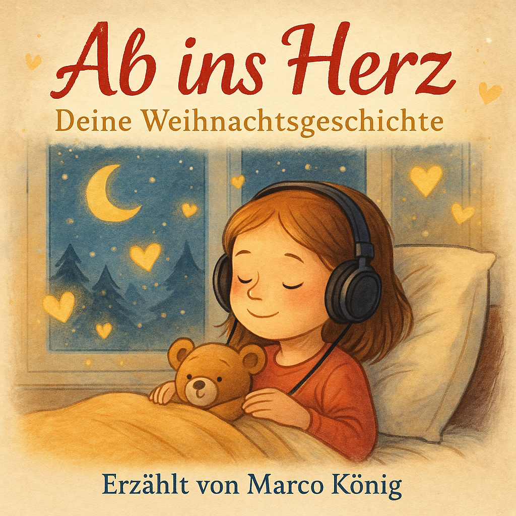 „Ab ins Herz – Deine Weihnachtsgeschichte“ ist eine individuell produzierte Audiogeschichte, in der dein Kind selbst zur Hauptfigur wird. Erzählt von Marco König – persönlich, berührend und rechtzeitig zu Weihnachten digital geliefert.